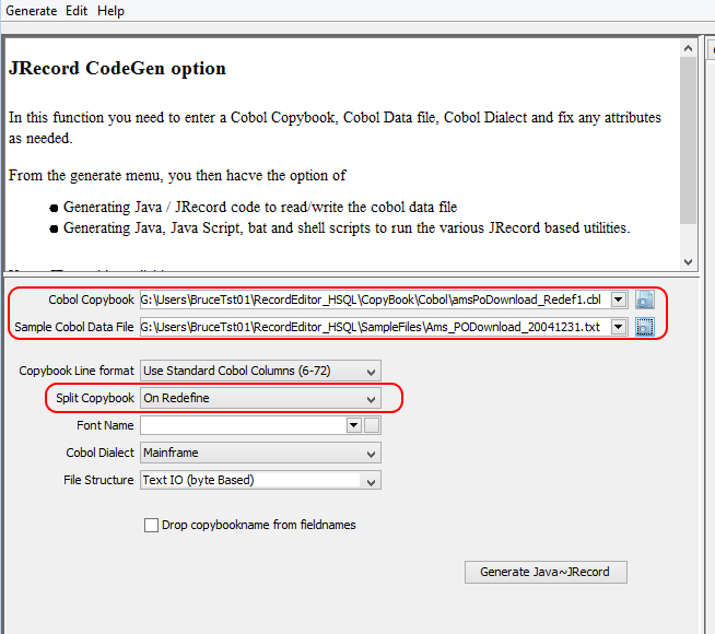 如果要对文件进行一些处理,可以使用生成RecordEditor的函数从Cobol文案簿中生成示例JRecord代码。