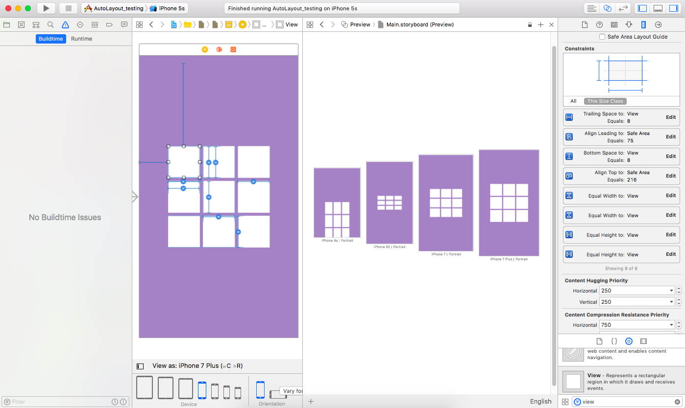 虽然我完全同意UIStackView是一个很好的选择,但是您也可以在正方形中添加Aspect Ratio约束( Multiplier为1),并确保它们保持平方(因为关于当前布局的任何内容都不要求视图是平方的)。
