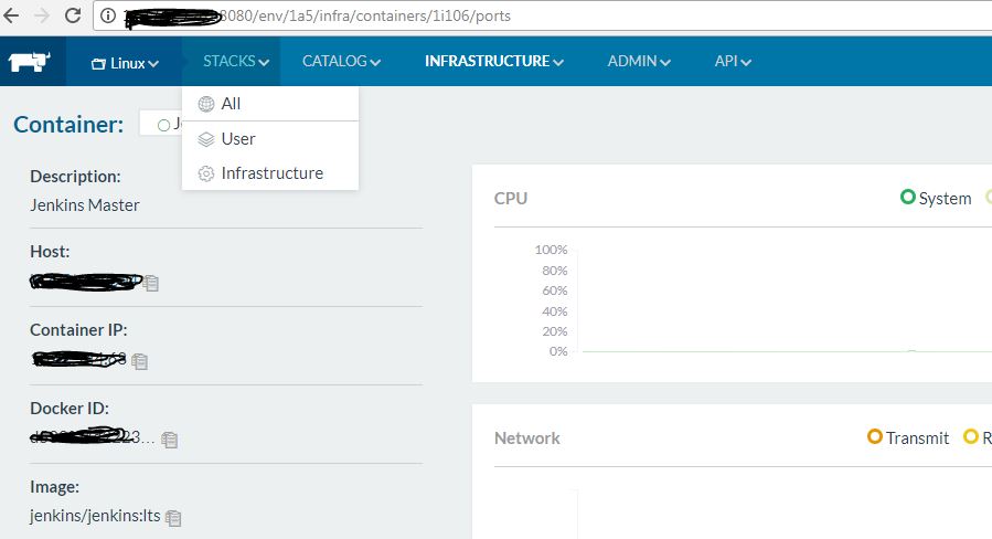 我的栈有所有/用户/Infrastructure选项,only.Below映像是我的牧场主服务器。