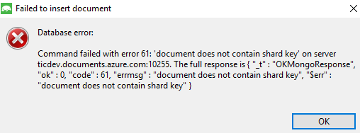 最后我也收到了同样的错误信息。Azure CosmosDB,MongoDB api.