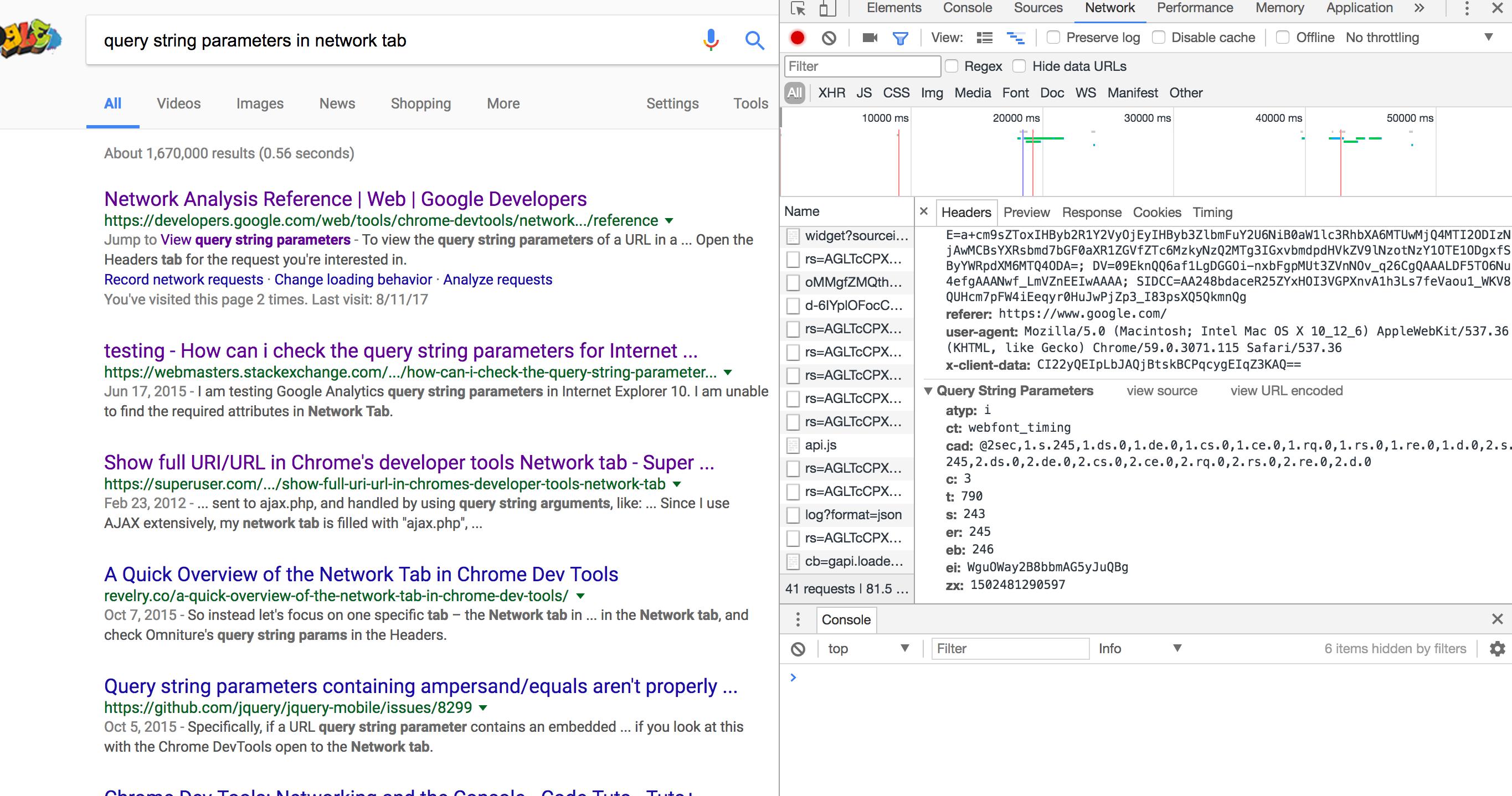 在所有方法中,都无法获得查询字符串的值和键,就像在“网络”选项卡中一样。您必须用一个函数手动分隔它,您可以使用代码在此提供来获得键的值。