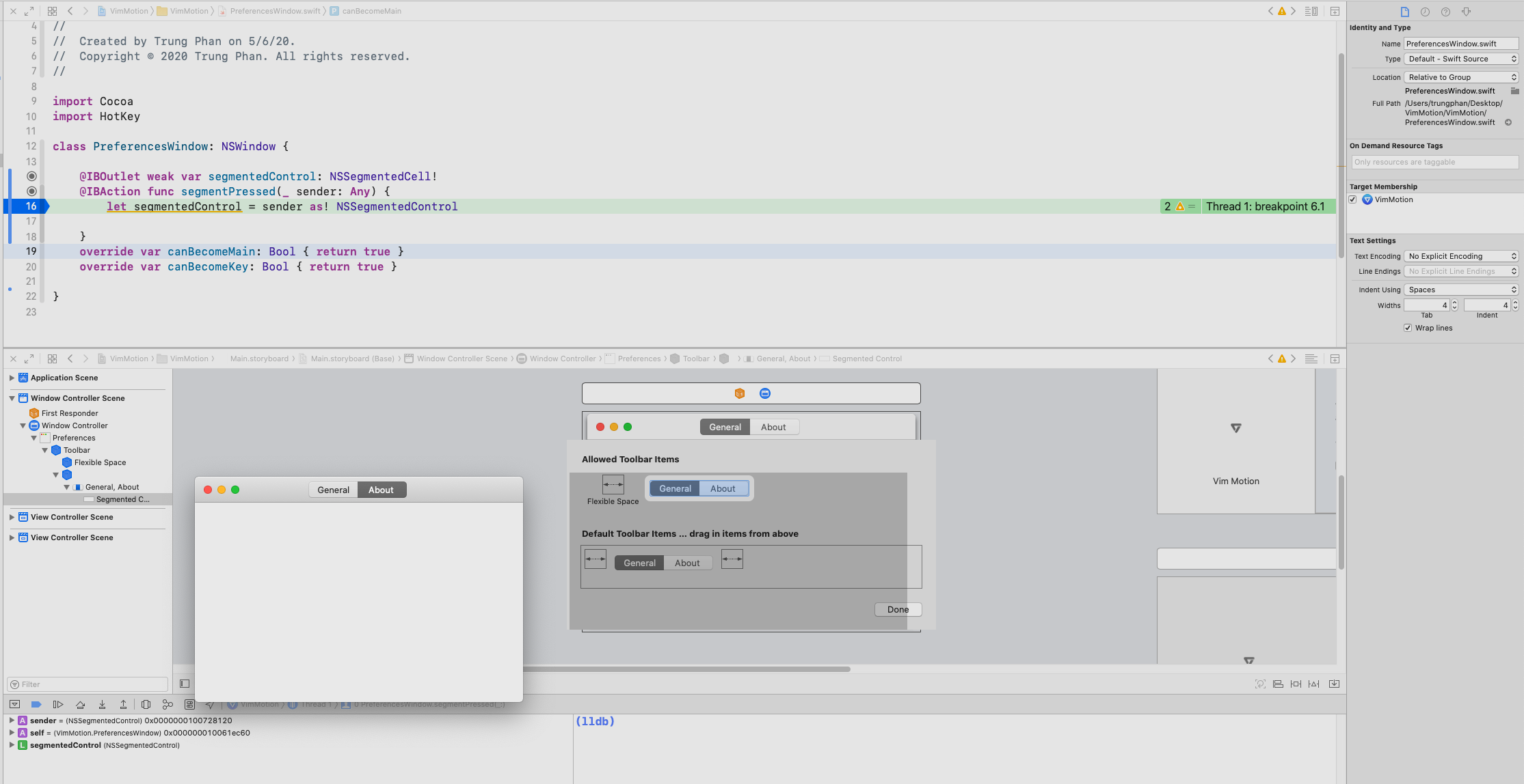 NSTabView头NSToolbarNSSegmentedControl作为NSToolbarItem。#selector侦听对NSSegmentedControl的更改。下面是当前的实现: