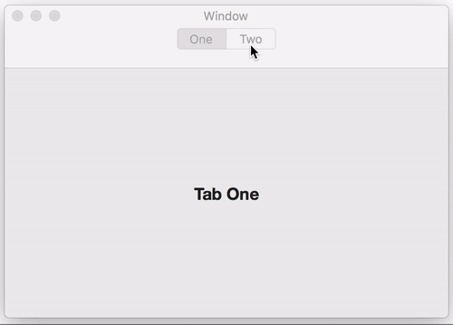 var tabBar: NSSegmentedControl? = NSSegmentedControl(labels: ["One", "Two"], trackingMode: NSSegmentedControl.SwitchTracking.selectOne, target: self, action: #selector(didSwitchTabs))