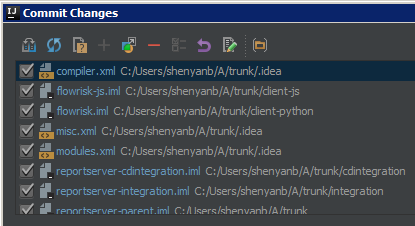 但是,当我单击提交更改 (Ctrl+K)时,.iml文件仍然出现在更改列表中。在其中一个.iml文件的右击菜单中,我看到了“忽略.”按钮被禁用。