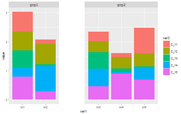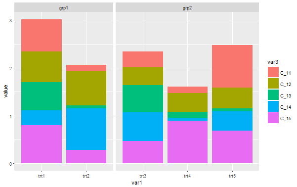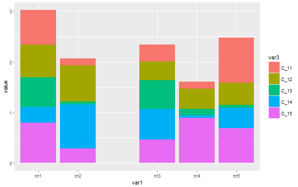 ggplot(dummydf, aes(var1, value, fill = var3)) +