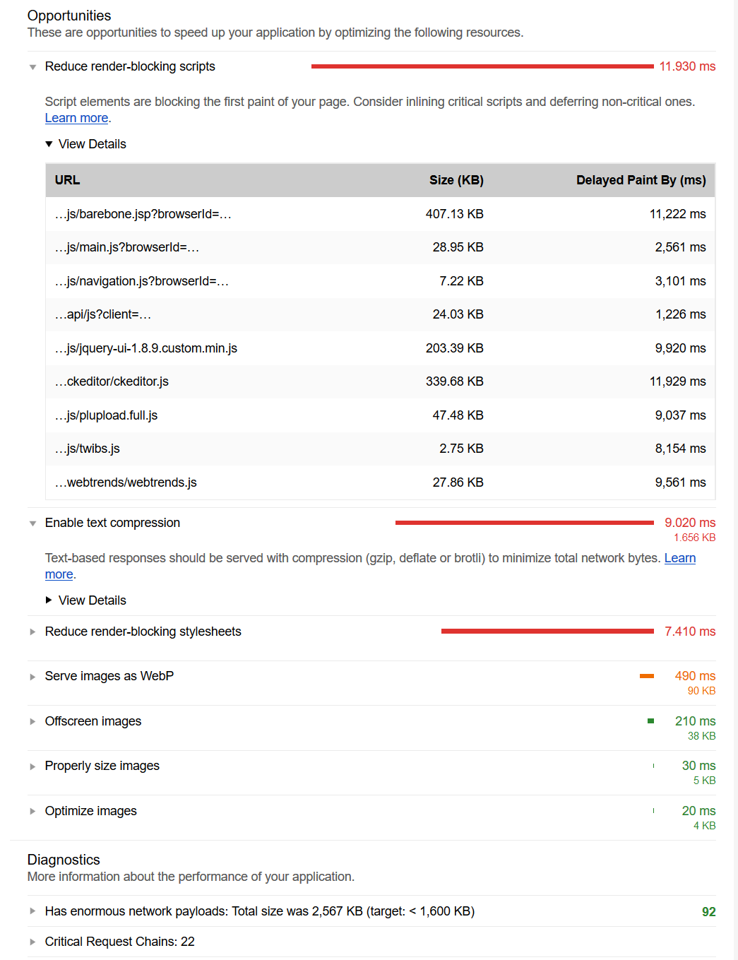 这是灯塔报告的摘录。在谷歌-铬灯塔的屏幕截图中,您可以看到一些度量是用逗号11,222 ms编写的,而其他标准则是用句号7.410 ms编写的