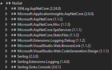 [10:59:15 INF] Request finished in 267.2553ms 200 text/plain我不确定问题是与Serilog或JSNLog,但任何帮助将不胜感激。