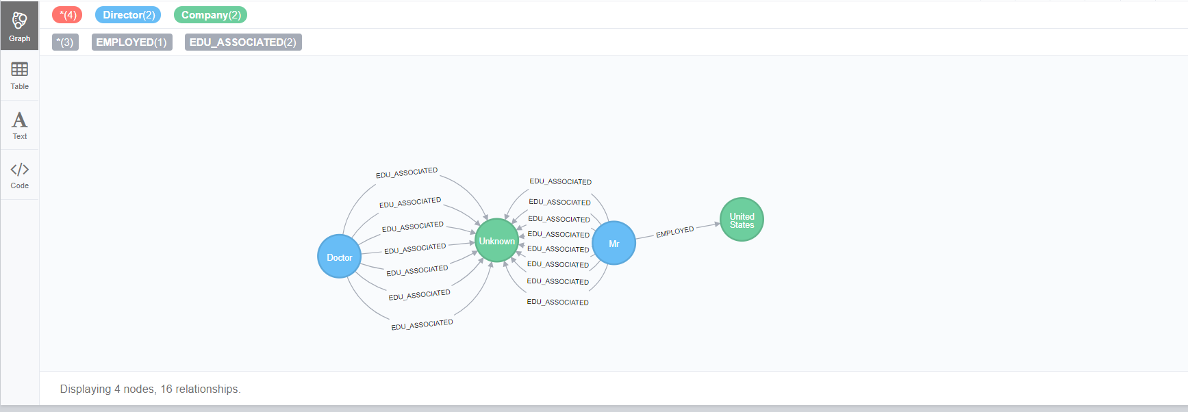 在图像中,“Mr”(节点不显示正确的名称)是员工。“美国”是雇主的潮流。“未知”是他/她过去工作过的公司,“医生”是“未知”公司与“先生”的关联雇员。