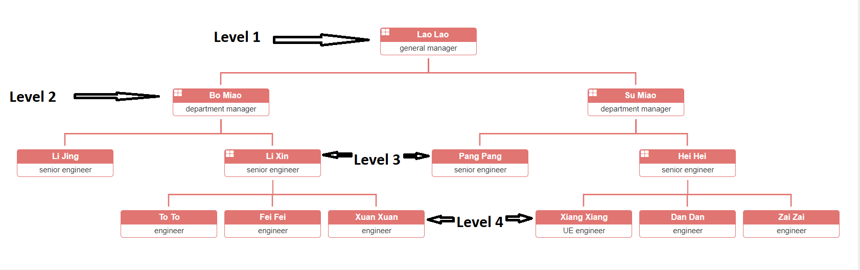 {name = Fei Fei , parent = Li Xin, level = 4 }