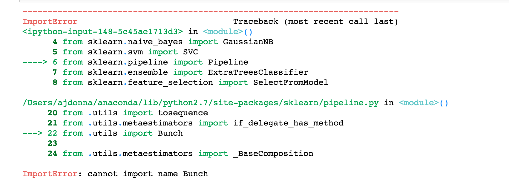 from sklearn.pipeline import Pipeline在下一行中,我再次得到与utils目录相关的错误: