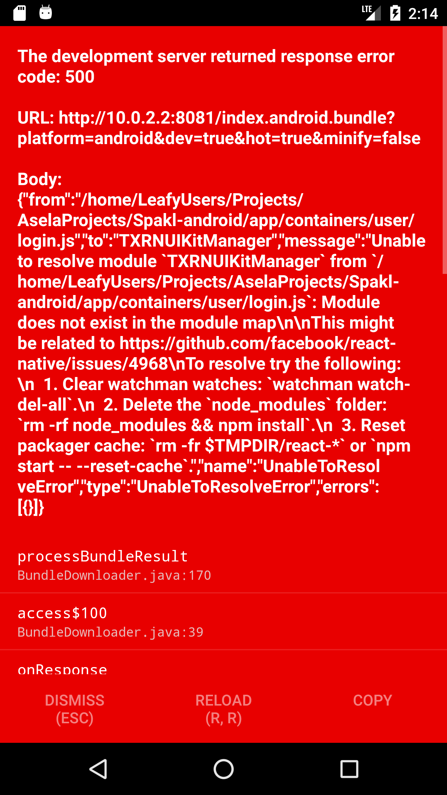 TL;DR:不尊重项目的符号链接,所以npm和纱线链接不像你期望的那样工作。显然,这一问题正在由地铁公司https://github.com/facebook/metro-bundler/issues/1解决。