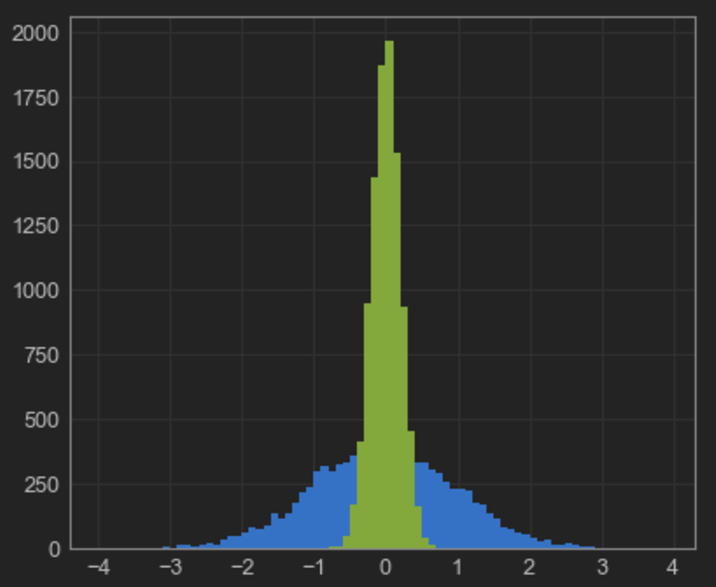 xbins={'start': -4, 'end': 4, 'size': 0.08},