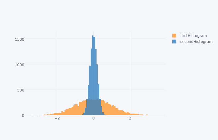 'secondHistogram': 0.2 * np.random.randn(10000)