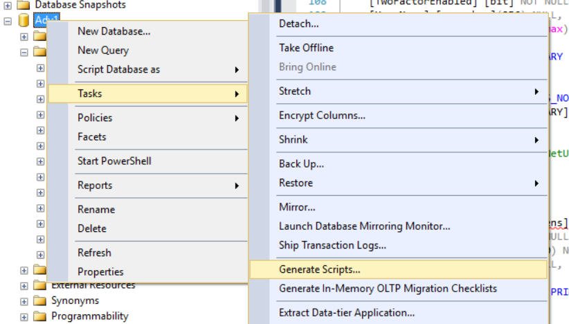问题:如何将标识框架sql数据表放入虚拟machien SQL表部分?我希望左边黄色的表(我原来的机器sql)也出现在我的虚拟机sql (图片的右侧)上。