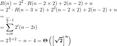 = 2^k T'(n-k) + (2^k - 1)m最后一个方程是通过在任意数k迭代(0 <= k <= n)之后按照逻辑级数进行处理的。