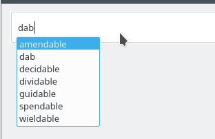 我希望弹出显示"dab“作为第一个建议,如果我键入"dab”,然后其他项目按字母顺序排列。