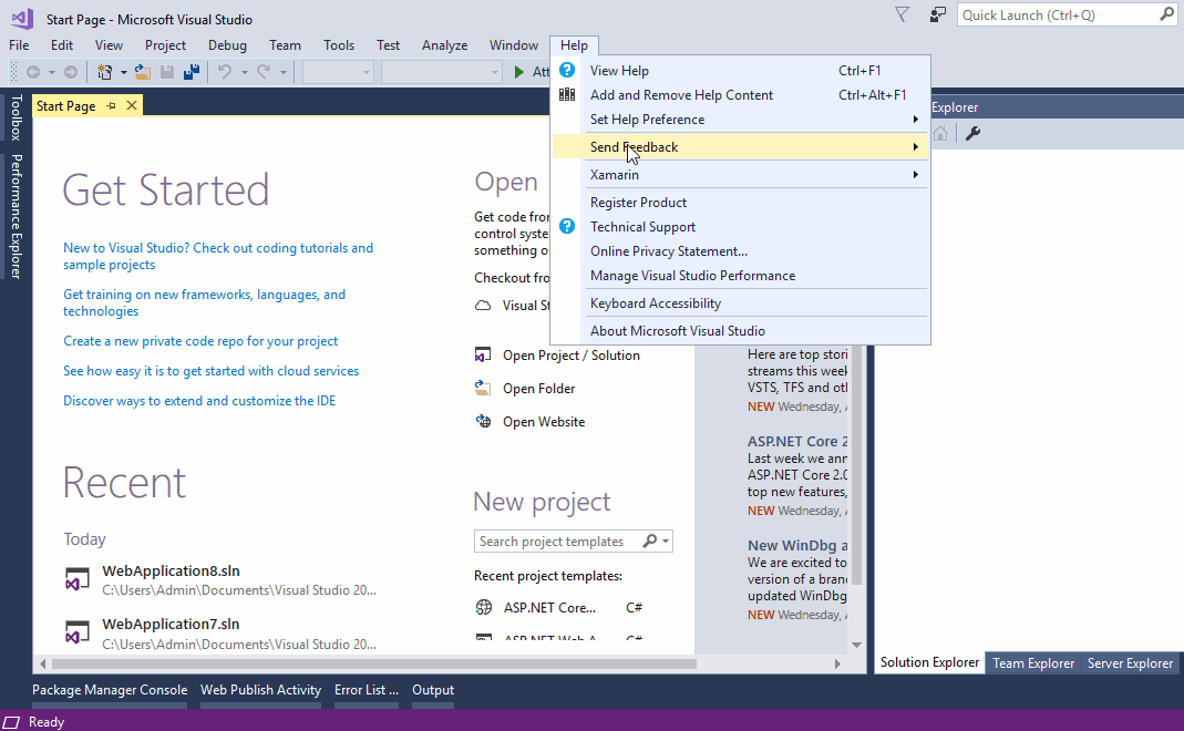 请参阅此:https://github.com/aspnet/Razor/issues/1628,请以管理员身份重新运行VS 2017安装程序,并单击“更新”升级到VS 2017 15.3.3版本,我尝试创建一个新的Asp.NET核心web应用程序来测试它,它运行良好,如下所示: