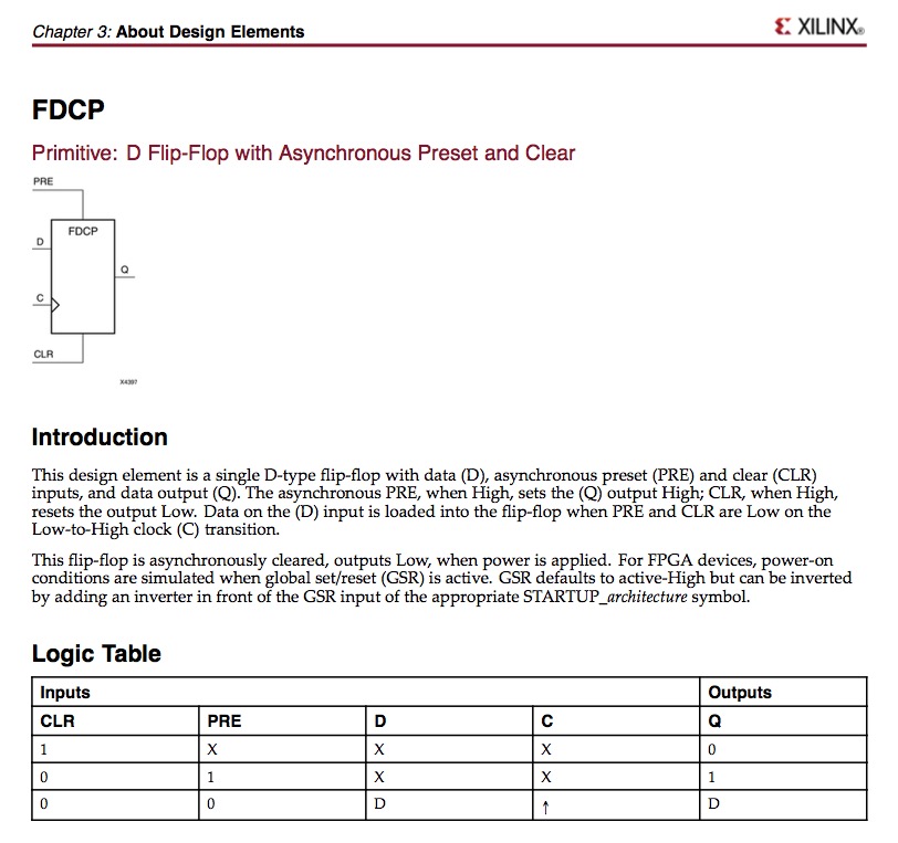 如果你要阅读斯巴达-6图书馆指南的原理图设计,你会发现一个D触发器的异步预置和异步清除都不是由斯巴达6(或更高版本的设备系列)。