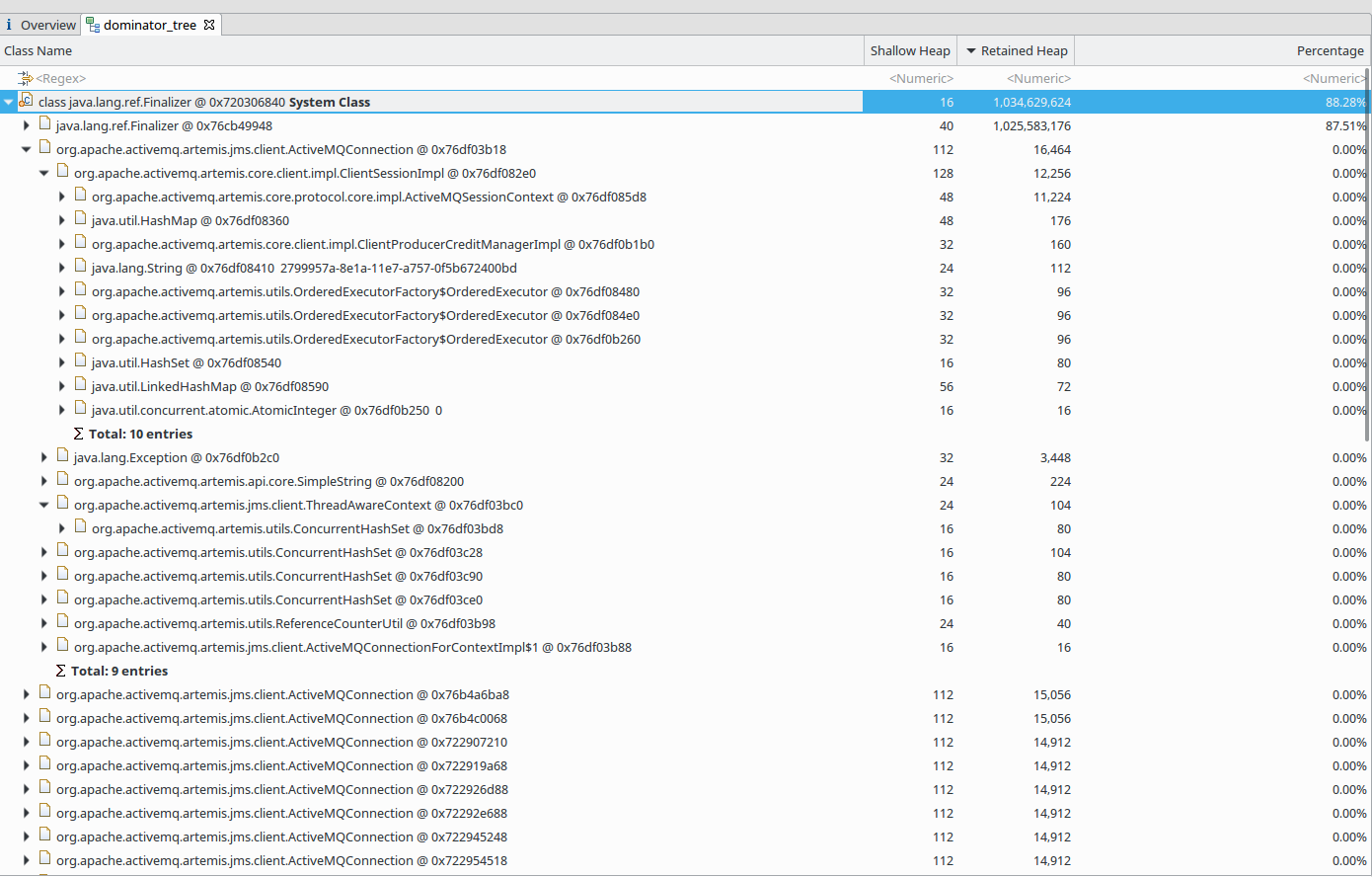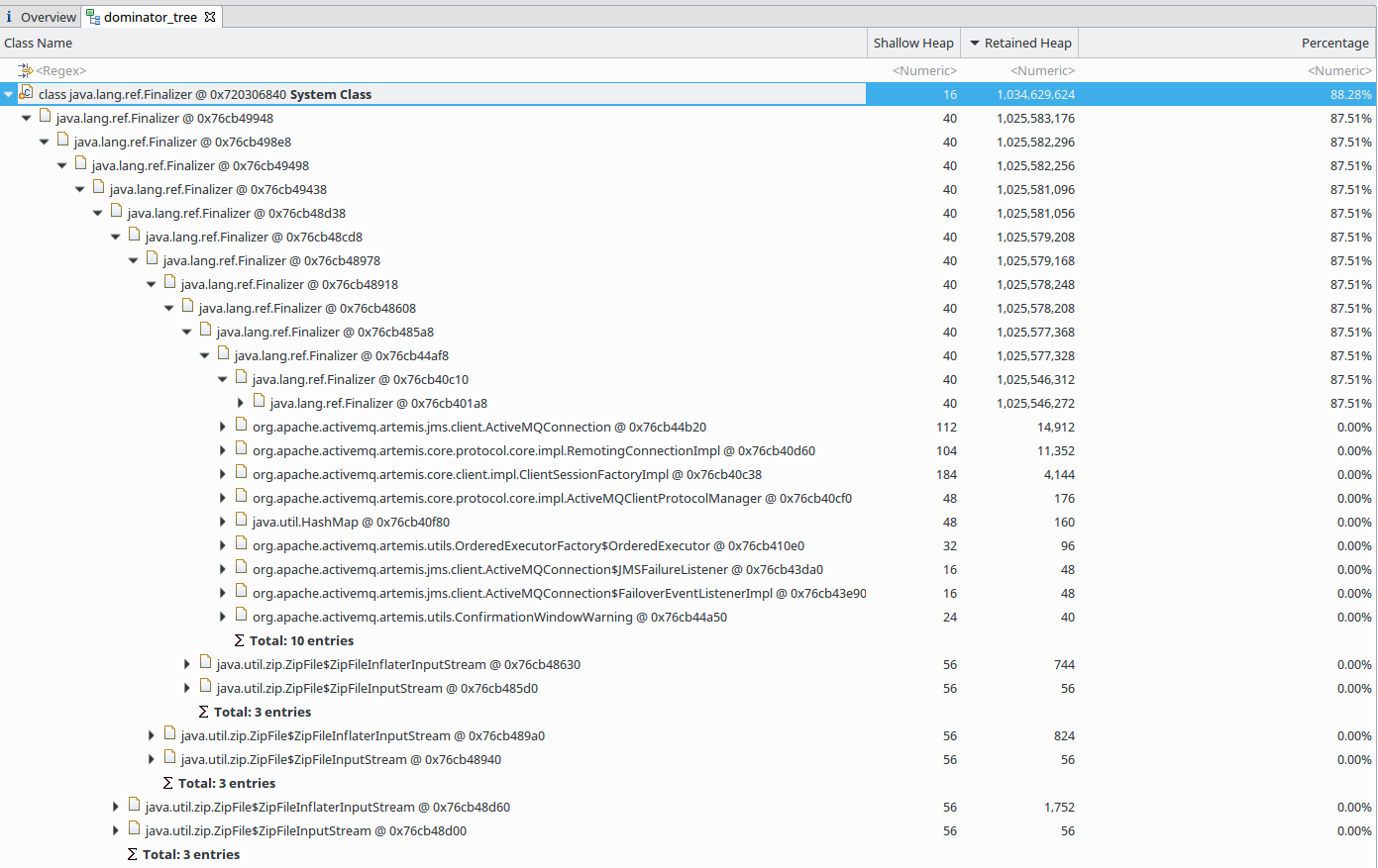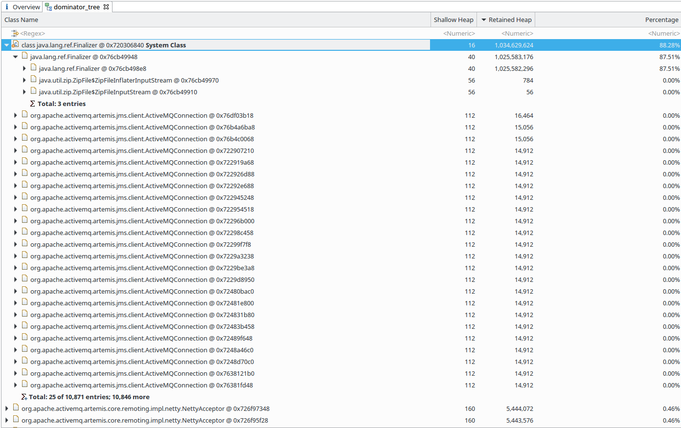 我从java堆转储中可以看到的嫌疑人是
