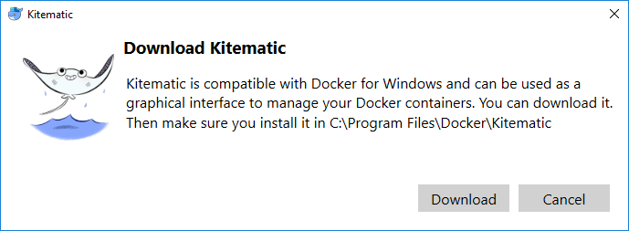 接下来,我将Kitematic内容复制到c:\program \docker\kitematic。当我从Docker菜单中运行Kitematic菜单时,它会给我一个错误,说明: