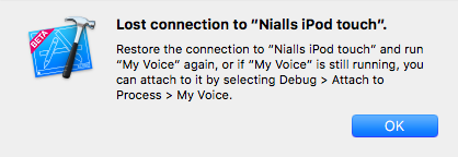 我的应用程序正在获取CoreData字符串和uiimages。我还拍摄了相机的实时馈送,并将其显示在UIView上。随机装置‘失去连接’。我检查了内存和CPU的使用情况,似乎没有出什么问题。
