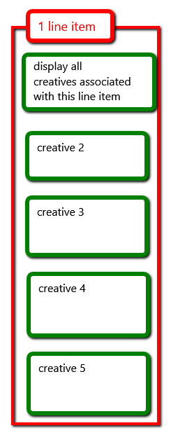 我在和谷歌DFP做斗争。我搞不懂,如何从一个广告单位展示多个创意。例如,我有sidebar_1广告单位,我想在这里瞄准sidebar_1房屋线项目,在这一行项目中有五个形象创作者。我想展示所有这五个创意,并有这个广告单位,他的高度与高度的这个创意。见图: