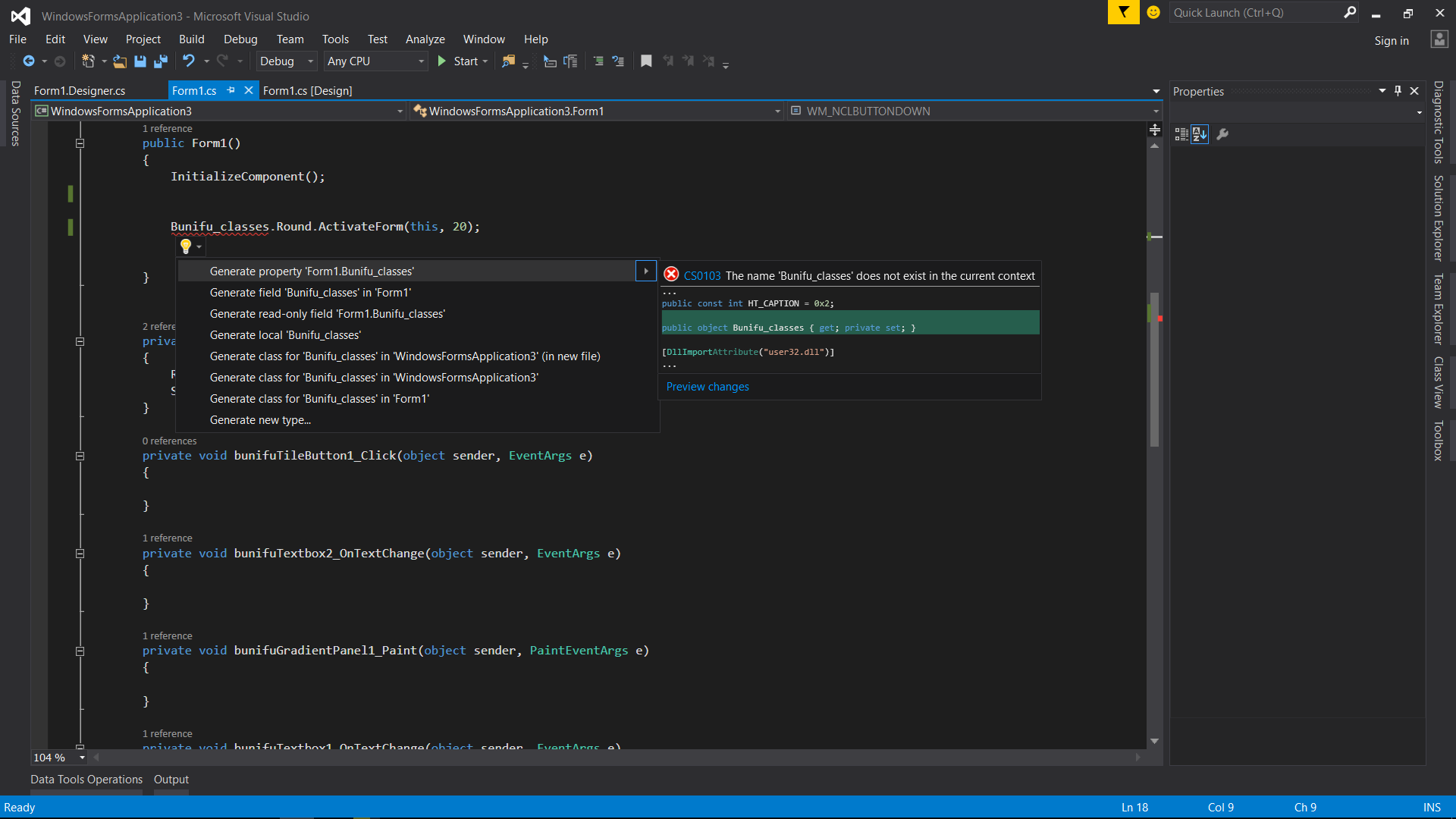 我正在使用Bunifu框架为C#项目设计UI。我想为我的Windows窗体做圆角,但是Bunifu_Classes不存在--如何解决这个问题?