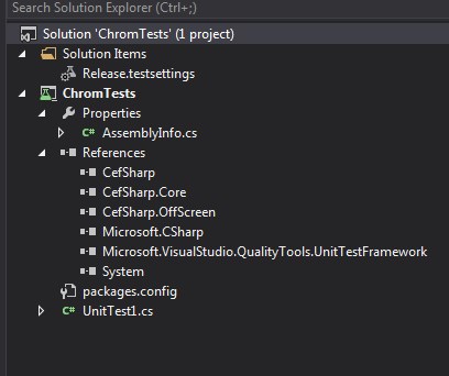 我试图在ChromiumWebBrowser模式下使用MsTest单元测试框架中的OffScreen提供一些测试.但是铬构造函数总是崩溃,我不能用它做任何事情。
