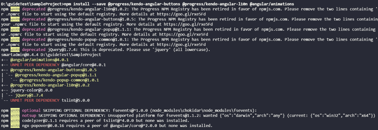 }从外部完成剑道npm的安装。在复制和粘贴nodeModule时没有出现错误。