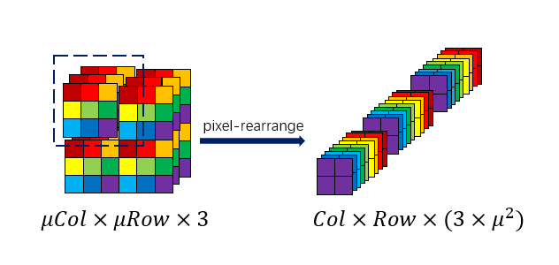[13, 15]]])请注意,将n,m数组组合到n*m一维的一般技术是执行reshape(m*n, ...)。由于行的主要顺序,平坦的尺寸必须在左边,这样才能使整形作为扁平操作工作。因此,如果在您的例子中通道是最后一个维度,您将需要将它们转到左边,扁平(使用整形),然后将它们转回来。