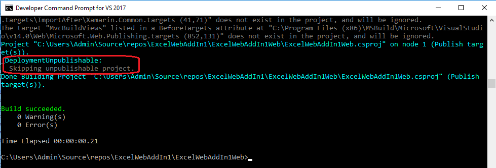 我已经在构建服务器上安装了vs build tools 2017。当我尝试用/t:Publish /p:PublishDir=构建“pub/”I get _DeploymentUnpublishable:跳过不可发布的项目时。
