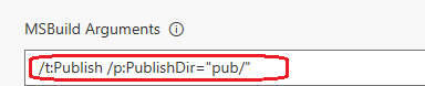 /t:Publish /p:PublishDir="pub/"添加到MSBuild参数: