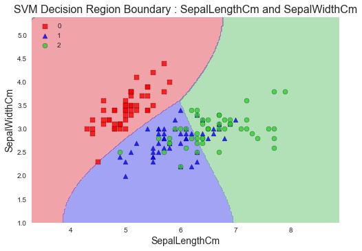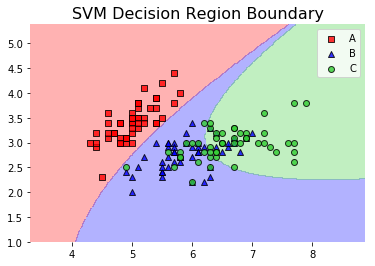 plt.title('SVM Decision Region Boundary', size=16)其结果是: