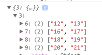 {"" :{ "3": {"6": ["12", "13"], "7": ["16", "17"], "8": ["18", "19"], "9": [ "20", "21" ]} }}请提出一个方法来做这个。