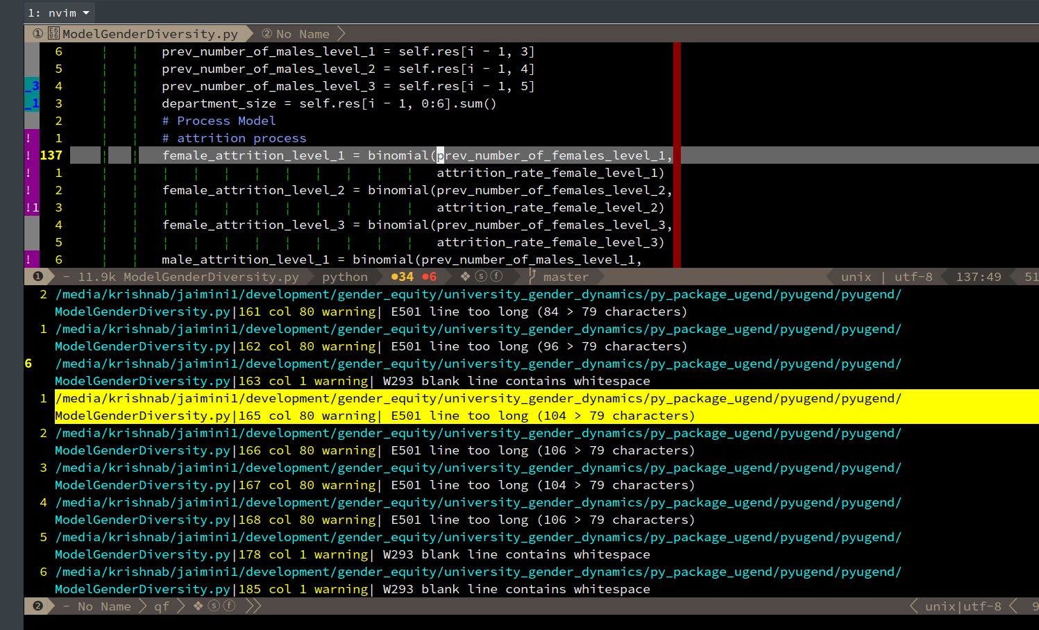 我在python中工作,并试图理解vim-syntastic呈现在最左边的列中的不同符号。我在下面附上了一张照片。