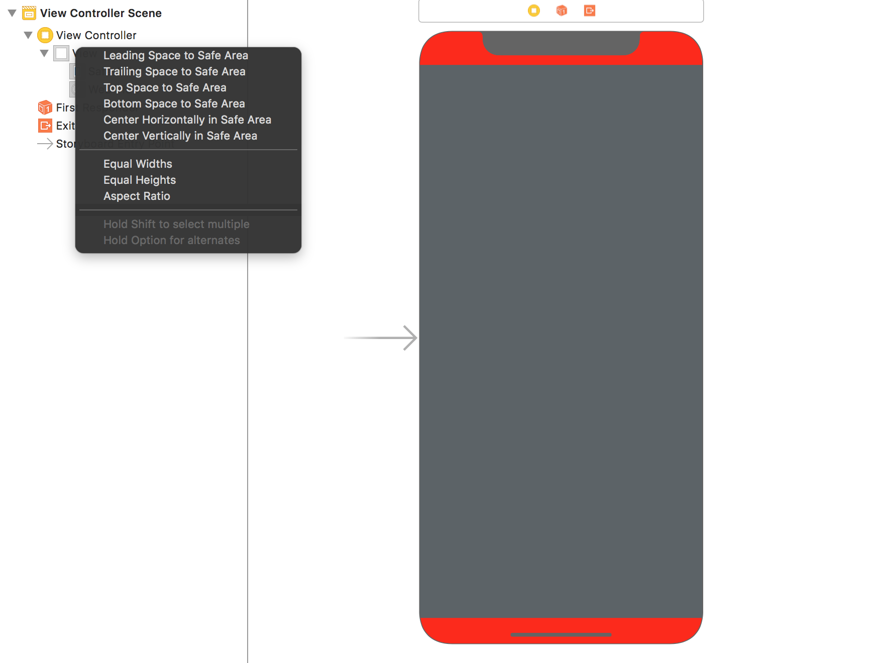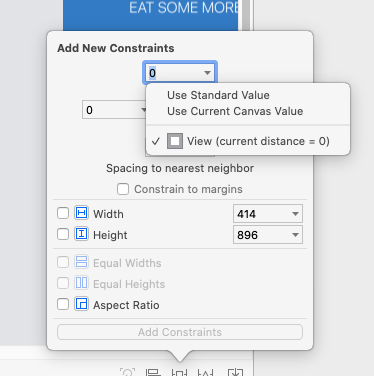 实际上,我相信答案是:要实现全屏,我们不应该使用安全区域支持。在未检查Interface大小检查器视图上的安全区域相对边距和安全区布局指南之后,我得到了预期的结果: