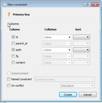 因为这个问题是在SQLiteStudio的上下文中提出的--您可以在表窗口中创建复合约束。虽然可以在表窗口的上部添加列,但窗口的下部用于管理复合约束: