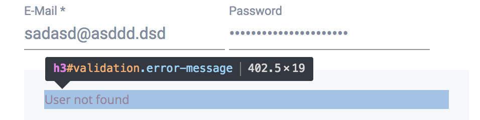 我正在尝试为登录编写e2e测试,但是我在检查这个错误消息时遇到了问题,尝试了许多css定位器不同的方式,但它从未起作用。