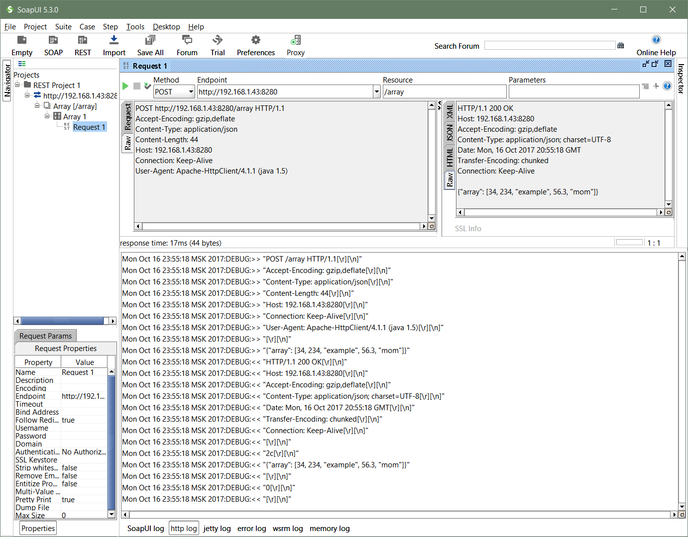 LogMediator To: /array, MessageID: urn:uuid:6... Envelope: <soapenv:Body><array>example</array></soapenv:Body>