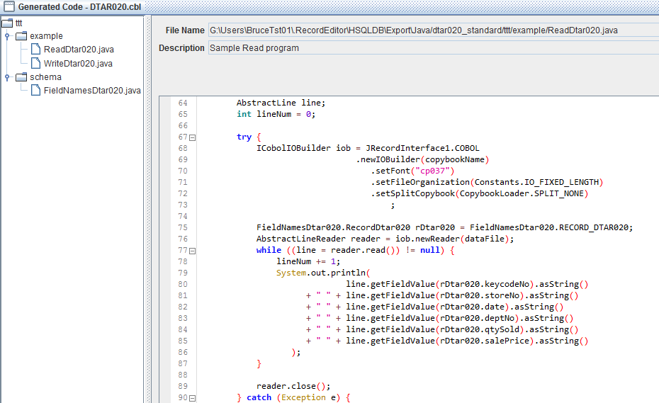 RecordEditor将使用Cobol文案和示例文件中的详细信息来生成JRecord。