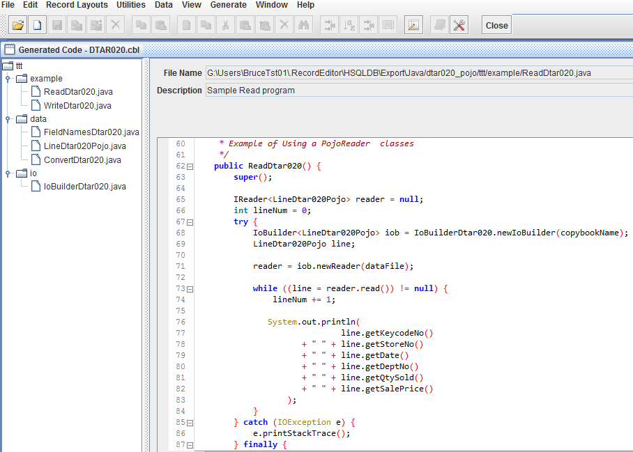 要启动代码生成器,请选择Generate >>> >>>~JRecord for Cobol