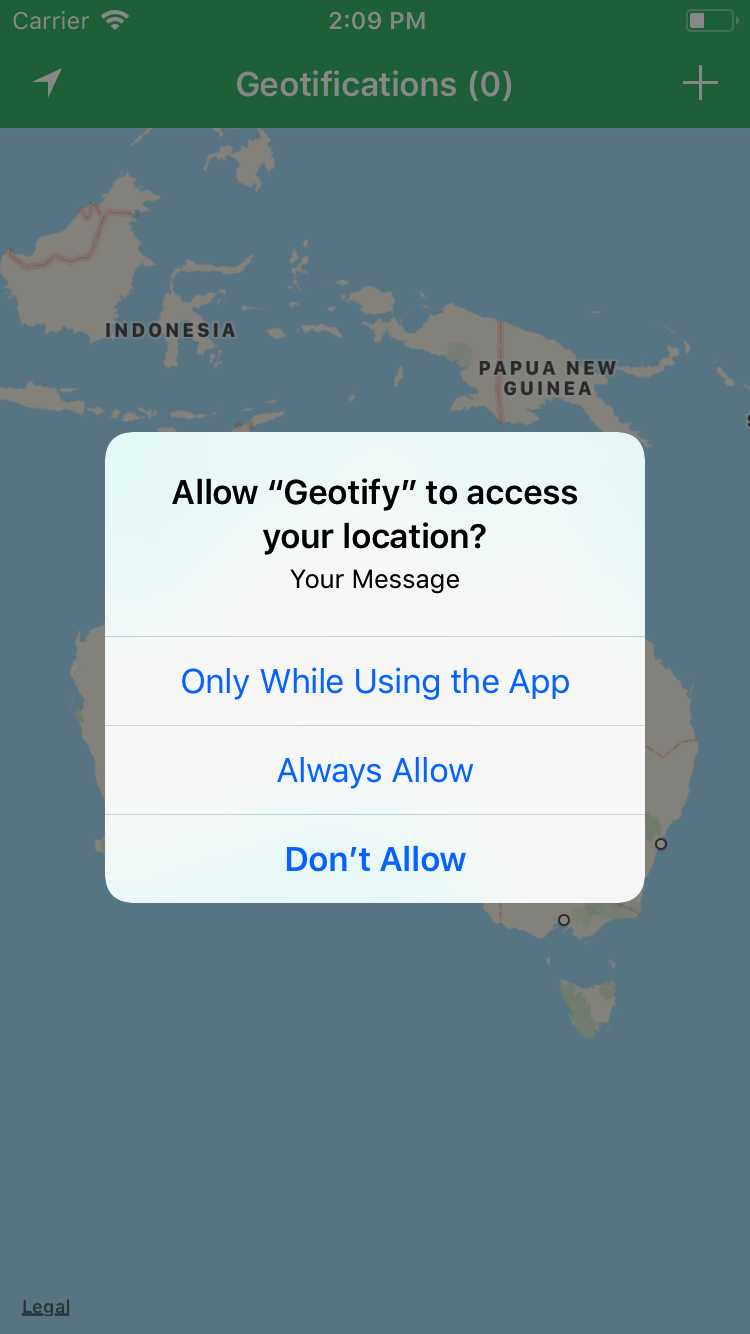 为了请求权限,我在文件中添加了两个键,但是在删除应用程序并再次打开它之后,模拟器没有显示警报以允许用户选择一个选项。