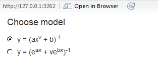 choiceNames = list(tags$span(HTML("y = (ax<sup>ν</sup> + b)<sup>-1</sup>")),