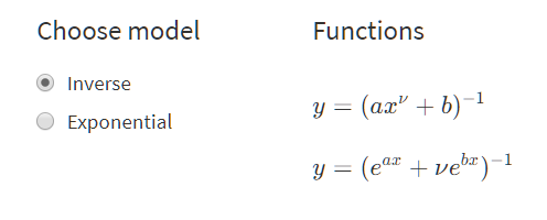 tags$span(HTML("y = (e<sup>ax</sup> + νe<sup>bx</sup>)<sup>-1</sup>"))