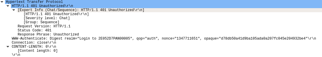 我有一个新的大华PTZ相机,它使用摘要身份验证,而VideoCapture在OpenCV中无法打开它。通过WireShark,我可以看到相机正在返回401Unaothorated。