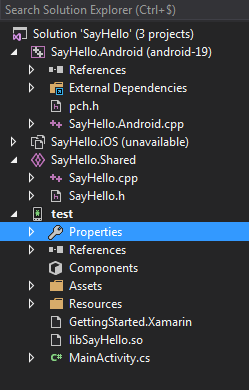 检查您的项目所需的archs。根据这一点,您的共享库应该为这些archs编译。您应该将共享库放在Xamarin.Droid.project的文件夹库中: