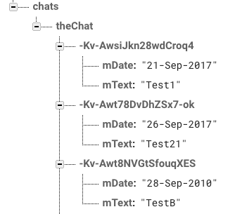 rootRef.child("chats").child(chatKey).setValue(newChat);检索所有属于其密钥已知的聊天的消息: