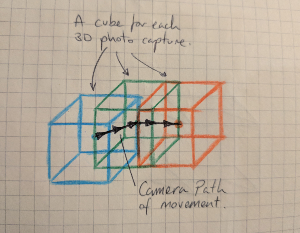如果在整个空间中有许多立方体地图(3d照片捕获),那么您可以使用THREE.CubeTextureLoader将它们映射到大小为真实比例的立方体网格的内部表面(类似于拍摄到的房间),并将它们放置在整个空间,以便它们的中心位于捕获时3D摄像机所处的位置。