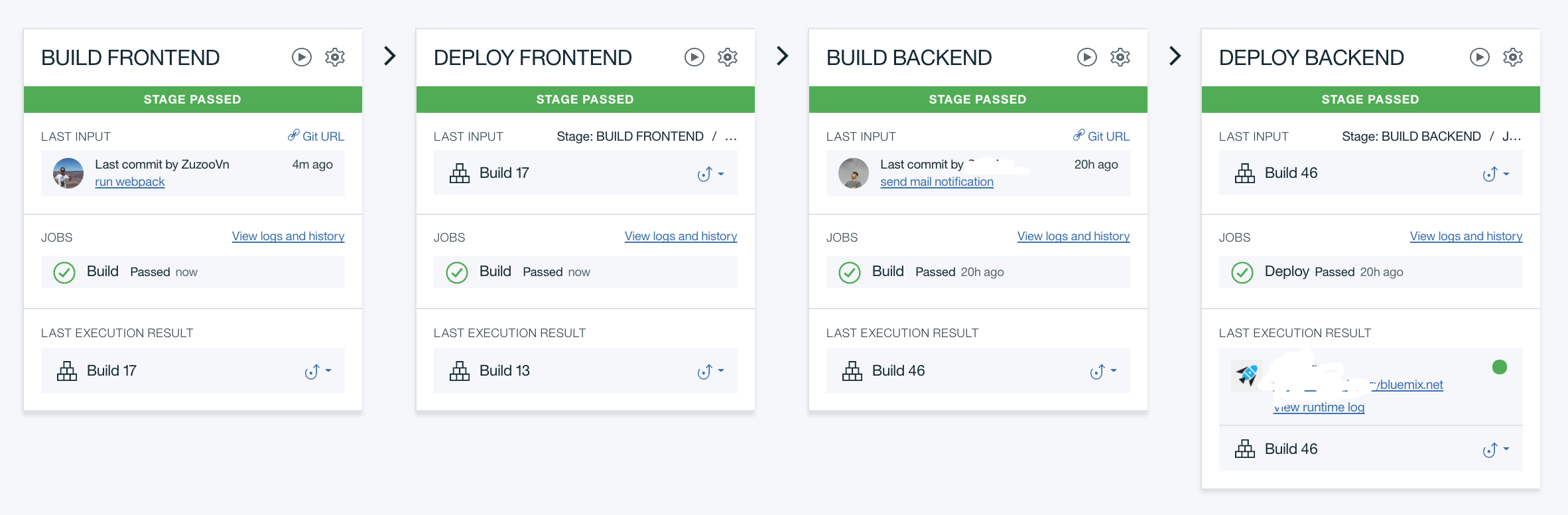 1.)正如Philippe所说,如果您在“BACKEND”阶段没有使用git输入,那么只需将“BACKEND”输入设置为stage类型并选择“Build前端”阶段。