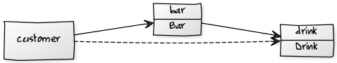 }在本例中,bar使用一个常规的requires作为饮料。现在假设,客户依赖于bar,所以它的所有代码都可以调用Bar::buyDrink。但当它发生时会发生什么呢?
